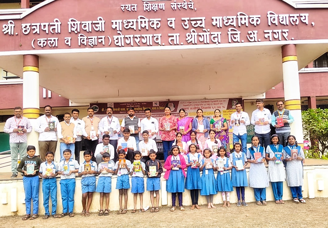 श्री छत्रपती शिवाजी माध्यमिक व उच्च माध्यमिक विद्यालय, घोगरगाव (ता. श्रीगोंदा, जि. अहिल्यानगर) येथे 2009 सालच्या बारावी कला बॅचच्या माजी विद्यार्थ्यांनी सामाजिक बांधिलकीचे जाज्वल्य उदाहरण घालत 117 पुस्तकांची मूल्यवान भेट दिली. अंदाजे 20,000 रुपयांच्या किंमतीची ही पुस्तके विद्यालयाच्या ग्रंथालयाला सप्रेम अर्पण करण्यात आली असून, ग्रंथालय समृद्धीच्या दिशेने हे एक महत्त्वपूर्ण आणि कौतुकास्पद पाऊल मानले जात आहे.