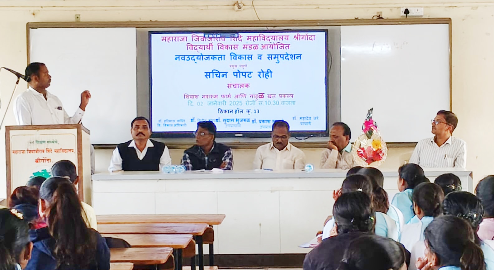 कार्यक्रमात शिवांश मशरूम फार्मचे संचालक श्री. सचिन पोपट रोही यांनी प्रमुख मार्गदर्शक म्हणून उपस्थितांना उद्योगविश्वाची दिशा दाखवली. “आजच्या काळात विद्यार्थ्यांनी केवळ नोकरीवर अवलंबून न राहता उद्योग, स्टार्टअप आणि स्वयंरोजगाराकडे वळणे गरजेचे आहे,” असे मत त्यांनी मांडले.